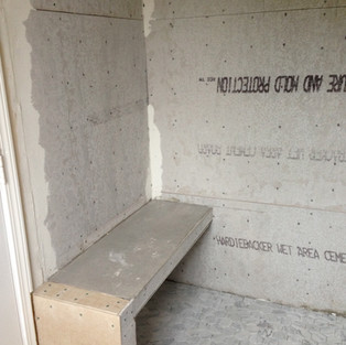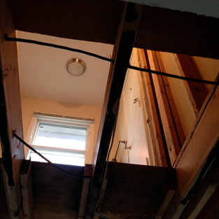 In the gallery you can see the original state of the bedroom and our bathroom remodel. The bathroom originally had no door and carpeting! The vanity came up to my upper thigh and I'm only 5'3". Plus, the shower was leaking into the kitchen. Once we opened it up we discovered a nice big hole in the plywood in the shower. It all had to go!